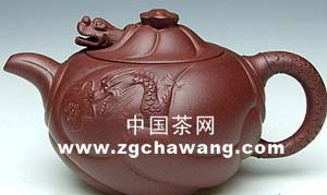 魚(yú)化龍,經(jīng)典款式,技法成熟,形器把握十分準確。用料考究、精工細制:壺身云紋間忽現龍騰、(另面)魚(yú)躍!壺把以龍身及尾,壺蓋
