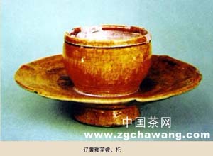 這件茶盞、托出土于河北宣化。遼代張世古墓。張世古葬于遼大安四年(公元1088年),表明該器件屬于遼代晚期作品。遼黃釉盞、托,由