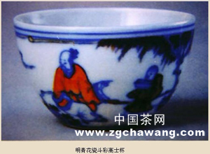 這件成化青花瓷斗彩杯,繪高士賞月于山溪之間,書(shū)童相伴身后。畫(huà)面處理上運用傳統中國畫(huà)增強減弱,虛實(shí)相間的方法。畫(huà)面主要表現