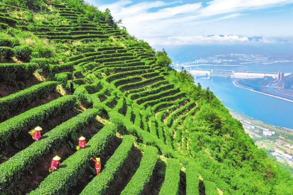 宜昌市夷陵區三斗坪鎮黃牛巖農民利用梯田建設青云頂茶山小鎮,發(fā)展農旅融合產(chǎn)業(yè),讓游客體驗茶文化、觀(guān)賞大壩勝景。(湖北日報全媒記者 陳勇 攝)茶是世界三大飲品之一。湖北地處優(yōu)...