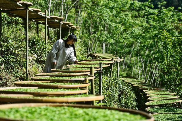 4月22日,湖北槽門(mén)古寨生態(tài)農業(yè)有限公司老板鄧輝、劉群夫婦和工人們一道忙著(zhù)將收購的野茶一簸箕一簸箕端到茶園里進(jìn)行涼曬。隨著(zhù)紅色旅游開(kāi)發(fā)和鄉村振興建設的深入,湖北省鶴峰...