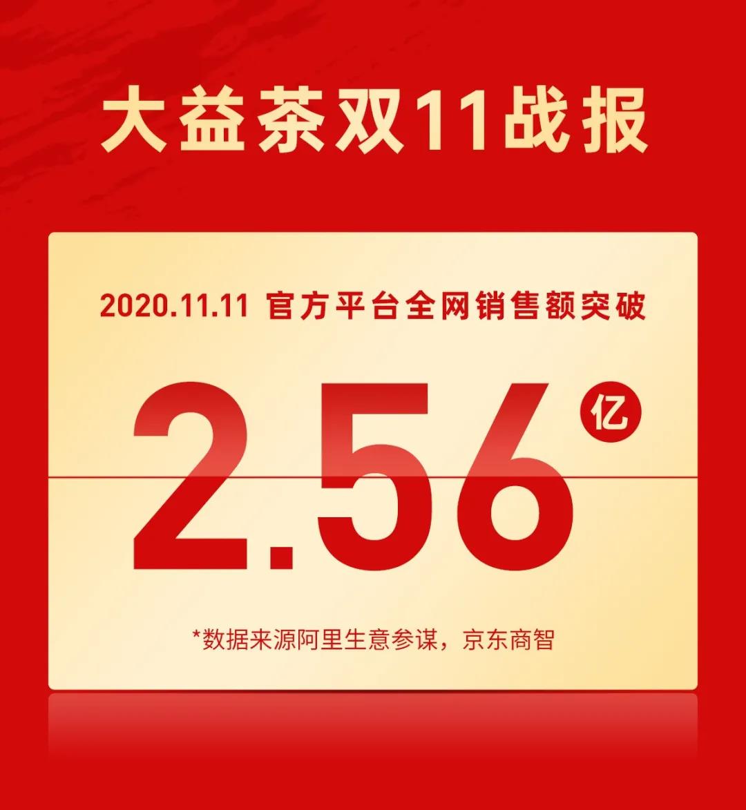 原標題:大益雙十一全網(wǎng)銷(xiāo)售額破2.56億!蟬聯(lián)天貓茶行業(yè)六連冠11月11日零點(diǎn),本年度雙11“大戰”結束,大益各項“戰績(jì)”出爐,再次刷新茶行業(yè)里程碑式記錄,大益茶官方平臺全網(wǎng)銷(xiāo)售額突破2.56億。其中,天貓大益茶葉旗艦店銷(xiāo)售總額...