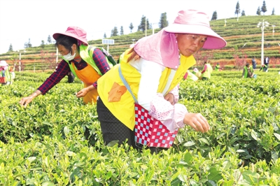 搬遷群眾正在菜園采茶。2018年以來(lái),水城縣充分利用貴州綠色產(chǎn)業(yè)扶貧投資基金和中國農業(yè)發(fā)展銀行貸款2.5億元,深入實(shí)施茶旅田園綜合體項目,不斷推進(jìn)茶園專(zhuān)業(yè)化種植,十萬(wàn)余畝茶葉現已成為當地群眾增收致富的“金葉子”。...