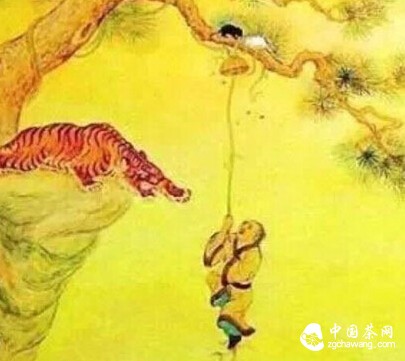 有一個(gè)人在森林中漫游的時(shí)候, 突然遇見(jiàn)了一只饑餓的老虎, 老虎大吼一聲就撲了上來(lái)。 他立刻用生平最大的力氣和最快的速度逃開(kāi),但是老虎緊追不舍,他一直跑一直跑一直跑, 最后被老虎逼入了斷崖邊上。站在懸崖邊上,他想:與其被老虎捉到,活活被咬、肢解, 還不如跳入懸崖,說(shuō)