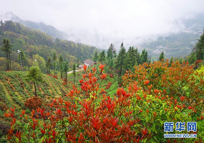 四月,三峽茶旅小鎮萬(wàn)畝茶園吐新綠,云霧繚繞美不勝收。新華網(wǎng) 張潘 攝