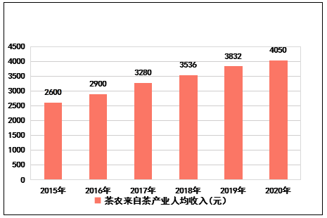 茶葉作為精準扶貧的重要產(chǎn)業(yè)之一,在云南脫貧攻堅戰中發(fā)揮了重要作用,全省茶產(chǎn)業(yè)涉及茶農600多萬(wàn)人,“十三五”期間,茶農來(lái)自茶產(chǎn)業(yè)人均收入年均增長(cháng)率達9.2%,2020年,人均茶產(chǎn)業(yè)收入達4050元,人均比上年增收218元,增5.7%。比2015年增加1450元,增幅達56%,茶產(chǎn)業(yè)為精準脫貧做出了積極貢獻。