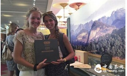 兩名意大利美女在展區內了解羊樓洞青磚茶