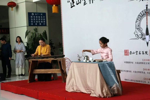 開(kāi)幕式特別邀請了中國古琴學(xué)會(huì )理事、大連古琴研究會(huì )副會(huì )長(cháng)賀玲女士和曾獲得茶藝表演大連賽區冠軍、華巨臣茶藝表演大連賽區冠軍、全國總決賽最佳風(fēng)采獎的盧閱微小茶藝師進(jìn)行同臺表演,讓來(lái)賓共賞一場(chǎng)曼妙的藝術(shù)盛宴。隨后,大連古琴研究協(xié)會(huì )的藝術(shù)家們?yōu)閬?lái)賓帶來(lái)了古琴合奏,“琴棋書(shū)畫(huà)詩(shī)酒茶”自古是國人推崇的七大雅事,今日其中三大雅的共同演繹,讓來(lái)賓感受了一回古代文人雅士的精致生活情懷。