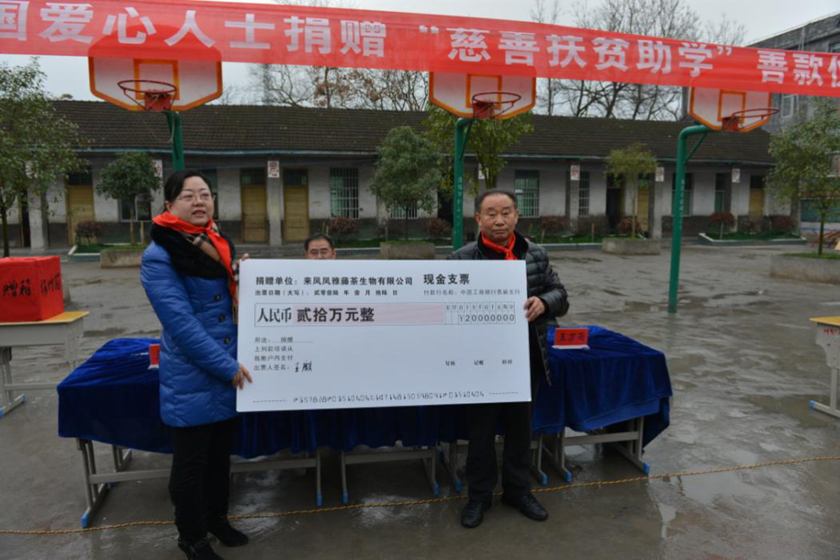 此外,為鞏固金祈藤茶發(fā)展成果,精準扶貧到戶(hù),實(shí)現幫助來(lái)鳳人們永久脫貧目的,集團對藤茶種植戶(hù)進(jìn)行定期技術(shù)培訓,并成立“金祈藤茶扶貧助學(xué)基金”,定向幫扶三胡鄉中小學(xué)、活水小學(xué)、花坨小學(xué)等3所學(xué)校,共計2000余名貧困學(xué)生、殘疾學(xué)生完成正常學(xué)業(yè)。在企業(yè)自身為來(lái)鳳縣山區失學(xué)兒童捐款捐物的同時(shí),通過(guò)三百工程帶動(dòng)社會(huì )力量捐錢(qián)捐物,截止目前累計捐贈款物達500多萬(wàn)元。