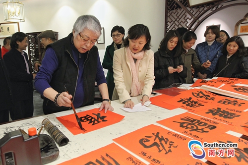 大部分市民都是網(wǎng)上報名參加此次活動(dòng),非常踴躍地向大師提問(wèn)交流,現場(chǎng)氣氛輕松活躍。周?chē)翘岢鰰?shū)法與繪畫(huà)的關(guān)系應當是“書(shū)畫(huà)同源,書(shū)法為上”,同時(shí)強調了文人畫(huà)在中國美術(shù)史的重要地位。周?chē)沁€表示,藝術(shù)創(chuàng )新必須要在繼承傳統的基礎上,如此才能承上啟下。春節將至,周?chē)沁€為市民寫(xiě)福字,送祝福。