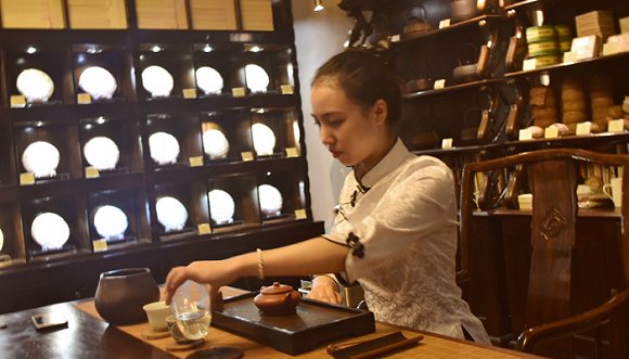 我是2009年來(lái)的大可堂。之前也在青島學(xué)過(guò)一陣子的茶藝,算來(lái)茶齡也有9年了。新來(lái)的茶藝師們都是要從新到老慢慢來(lái),我泡老茶大概是來(lái)大可堂3年以后,今天大可堂茶單上的茶基本是都泡過(guò)了。