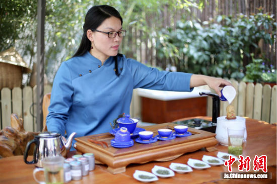 越來(lái)越多的無(wú)錫人正加入飲茶行列,圖為3月27日,一位茶藝師表演茶道。