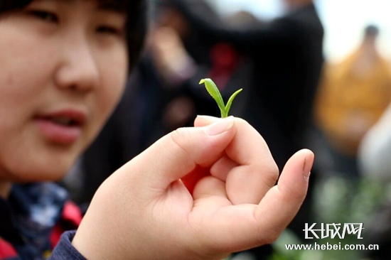 工作人員介紹采摘好茶的標準——一芽一葉。長(cháng)城網(wǎng) 高琳哲 攝
