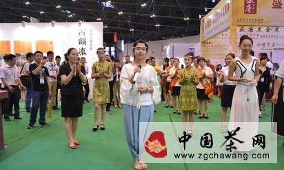 當天下午展會(huì )現場(chǎng),茶香陣陣,茶韻汩汩。4點(diǎn)30分的時(shí)候,臺灣名茶展團連廊處,一位穿著(zhù)茶服、頭戴茉莉花環(huán)的女孩高唱著(zhù)《茉莉花》從人群中款款走出,姿態(tài)婀娜,如茶般優(yōu)柔親和,引得人們側目駐足。轉眼間,又有女聲群音相和。