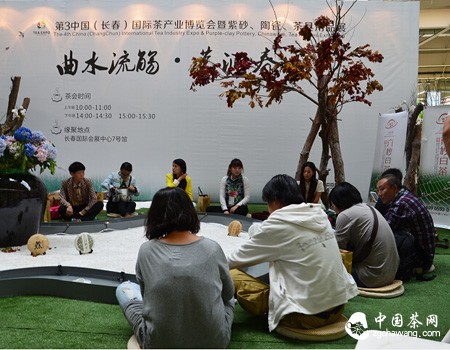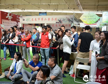 開(kāi)幕當天,展館一隅--那充分展現古典茶藝之美的“曲水流觴·茗潤春城”茶會(huì )現場(chǎng)“遭”到眾多茶友圍觀(guān)。“我們在展館內設置一個(gè)如此獨特新穎的茶會(huì ),不僅是為茶友提供了一個(gè)仿效先人流杯弄茶、臨水雅酌的機會(huì ),同時(shí)我們更希望茶友在逛展會(huì )的時(shí)候,可以有個(gè)清凈優(yōu)雅的休息環(huán)境,讓茶友在品聞佳茗那股淡雅清香的同時(shí),也能感受到古典茶藝那份別樣的美麗”。曲水流觴茶會(huì )執行策劃劉小丹說(shuō)道。