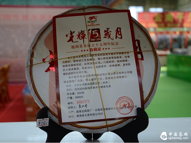“光輝15年歲月”是龍園茶業(yè)成立十五周年紀念茶。本片普洱茶精選云南西雙版納勐海早春?jiǎn)棠緯袂嗝铻樵?,按傳統工藝發(fā)酵后,精心篩選高等級散茶,經(jīng)高溫蒸壓精制而成。此茶湯色紅亮、口感甜潤、滋味醇厚??芍^飲之清涼解渴,幫助消化,祛除疲勞,安神醒酒。具有較高的品飲和收藏價(jià)值。