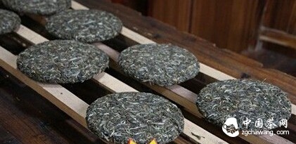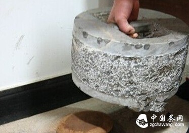 5.壓餅,用25公斤重的石磨來(lái)壓茶,使茶成餅形;