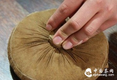 4.制餅,按照一定方法,在干凈布袋里,把茶揉緊,揉成圓餅;