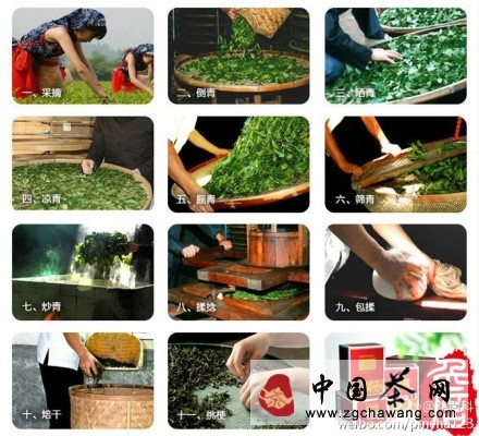 【鐵觀(guān)音基本制作流程及圖】鐵觀(guān)音制作十分精細,有“好喝不好制”之說(shuō),包括采摘、初制、精制三部分。采摘要掌握采摘期、采摘標準和采摘技術(shù);初制要精通曬青、涼青、搖青、炒青、揉捻、初烘、包揉、復烘、復包揉、烘干10道工序;精制要把握篩分、揀剔、拼堆、烘焙、攤涼、包裝6道工序。