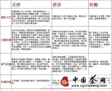 正炒:外形:正炒干茶顯黑、色澤較暗不鮮活,視覺(jué)觀(guān)感較差。正炒茶湯一般顯黃;正炒葉底一般為土黃綠色調;2、消青:干茶一般顯烏綠,色澤鮮活度普遍較高,視覺(jué)觀(guān)感較好。消青茶湯青綠帶黃;消青葉底一般介于墨綠色到土黃綠色。3、拖酸:干茶多顯青綠,色澤鮮活度普遍較高,觀(guān)感與消青茶的差異并不是很大,因此較難從外觀(guān)上區分,葉底多墨綠。