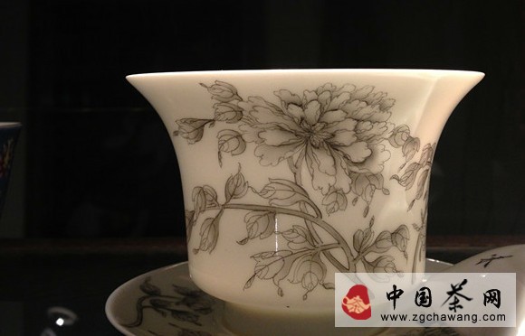以下是我們收到的江窯的墨彩荷花、牡丹蓋碗。