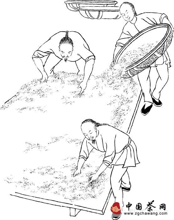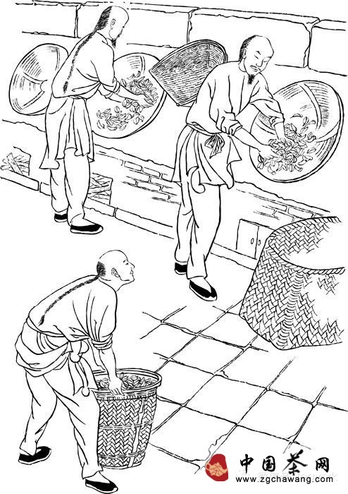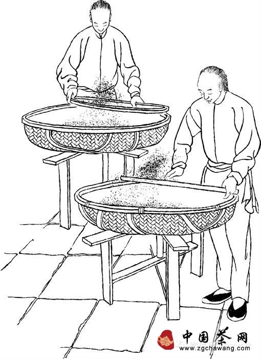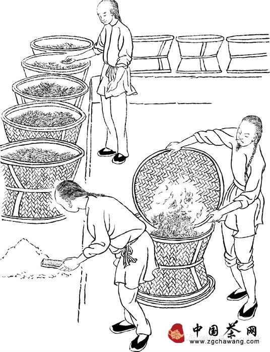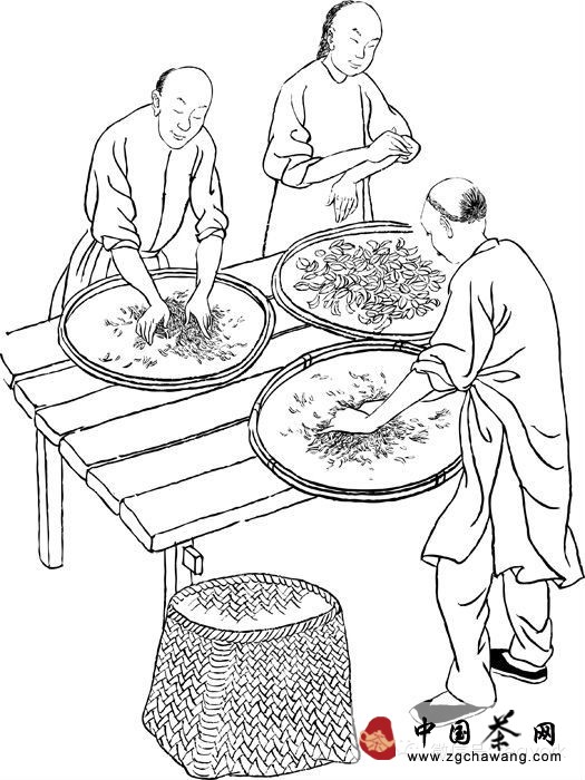采摘 -> 萎凋[曬青 -- (復式萎凋即二曬二晾)--晾青] -> 做青[搖青與做手(反復多次)] -> 炒青(兩次炒兩次揉) -> 揚簸 -> 晾索(攤放) -> 揀剔 -> 復焙(足火) -> 團包 -> 補火 -> 毛茶裝箱。