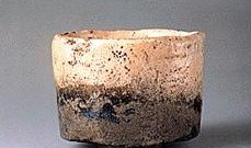 樂(lè )茶碗根據釉色分為赤樂(lè )與黑樂(lè )兩種。赤樂(lè )施紅釉,是天正十四年前試燒成功的品種;黑樂(lè )施黑釉,黑中泛褐,富于變幻,給人以溫厚的感覺(jué)。樂(lè )燒放棄了轆轤拉坯的制作方法,完全由手捏制,加以刀削成形,因而器形都不完全規整,正符合了佗茶道中不對稱(chēng)的審美。無(wú)論赤樂(lè )還是黑樂(lè ),都在素燒(胎土成形后不上釉而直接入窯燒制)后多次上釉(如此一來(lái)釉比較厚),再入窯燒成(所謂“二次燒”),工藝過(guò)程非常復雜、講究。所以樂(lè )燒雖看似粗樸,實(shí)則精心制作之產(chǎn)物。尤其是黑樂(lè )茶碗,兼有天目茶碗的釉色之雅與高麗茶碗的造型之柔,又與深綠的末茶在色調上極為協(xié)調,極受千利休的喜愛(ài)(豐臣秀吉則不喜歡),并很快在茶人中普及。樂(lè )燒的出現,與豐臣秀吉暴發(fā)戶(hù)式的黃金茶風(fēng)、盲目追求“唐物”(由中國傳入的茶具)、“名物”(自古傳下來(lái)的名器)的惡劣傾向一定程度上形成了對抗。