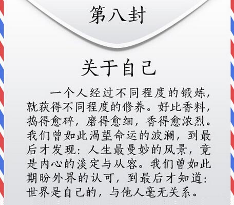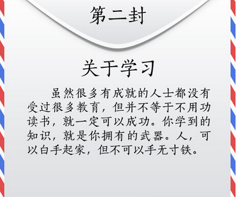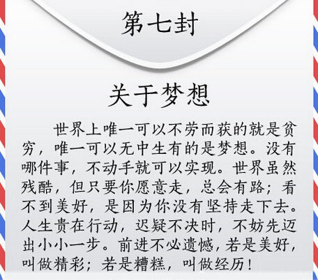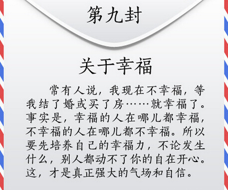 寫(xiě)給成長(cháng)的九封信:世界上唯一可以不勞而獲的是貧窮,唯一可以無(wú)中生有的是夢(mèng)想。 九封信,寫(xiě)給迷茫、焦慮、不想碌碌無(wú)為的你,愿每一封都能對你有所啟發(fā)。