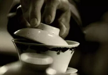 蓋碗茶的茶蓋放在碗內,若要茶湯濃些,可用茶蓋在水面輕輕刮一刮,使整碗茶水上下翻轉,輕刮則淡,重刮則濃,是其妙也。