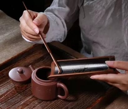 紫砂茶具長(cháng)期不用,或疏忽未及時(shí)將茶渣傾出,發(fā)生霉變或產(chǎn)生異味,可在消除霉味變異味茶渣后,注滿(mǎn)開(kāi)水,稍晃數下傾出,旋即沒(méi)入涼水中,異味可除。若一次不行,可反復二至三次。這就是古人所說(shuō)的“壺縮雜氣,滿(mǎn)貯沸湯,傾即沒(méi)冷水中,亦急出水瀉之,元氣復矣。”