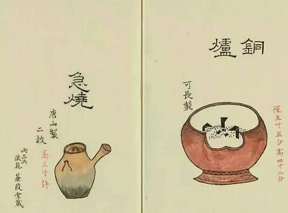 銅爐:為生火煮茶之用,以鍛鐵鑄之,或燒制泥爐代用。