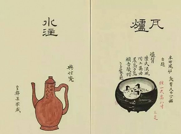 此《賣(mài)茶翁茶器圖》就乃木村孔陽(yáng)氏模寫(xiě)賣(mài)茶翁(高游外)茶具計33件,都彩繪木刻,甚精細。亦猶可遠窺唐宋古器形制之大略。