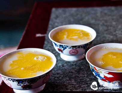 再說(shuō)說(shuō)西藏的酥油茶,酥油是牛奶或羊奶煮沸之后蒙在上面的一層脂肪,將酥油、茶水、糖和鹽一起倒進(jìn)打茶筒,上下?lián)u動(dòng),直到筒內聲音從"咣鐺、咣鐺"變成"嚓咿、嚓咿"時(shí)茶即混為一體了。