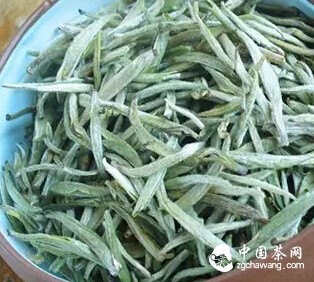 產(chǎn)于湖南岳陽(yáng)君山。由未展開(kāi)的肥嫩芽頭制成,芽頭肥壯挺直、勻齊,滿(mǎn)披茸毛,色澤金黃光亮,香氣清鮮,茶色淺黃,味甜爽,沖泡看起來(lái)芽尖沖向水面,懸空豎立,然后徐徐下沉杯底,形如群筍出土,又像銀刀直立。假銀針為清草味,泡后銀針不能豎立。