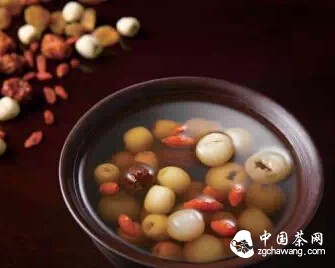 原料:枸杞5g、龍眼肉3g、綠茶3g、冰糖10g。