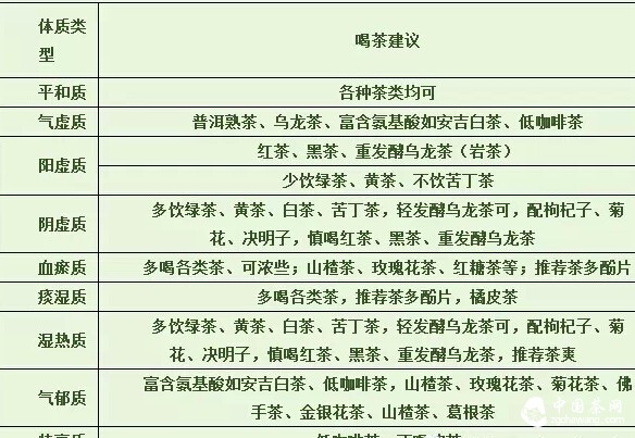 體質(zhì)與飲茶種類(lèi)的搭配建議如下: