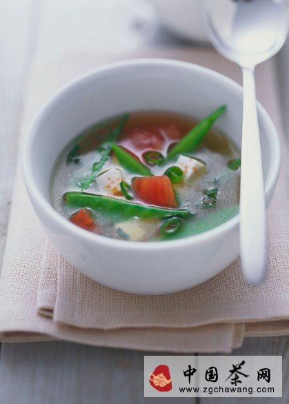味噌湯煮起來(lái)不費時(shí),因此成了日本早餐的首選。味噌湯基本是日本豆面醬和味噌湯的混合物,是日本的傳統早餐。湯可咸可甜,里面還有蔬菜等,可以根據煮湯人的喜好來(lái)加。