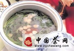做法:洗凈所有材料,鍋中注入8分滿(mǎn)水,水開(kāi)后,放入所有材料,以大火煮20分鐘,轉至小火煮2小時(shí)即。在最后加入西洋菜,煮熟即可