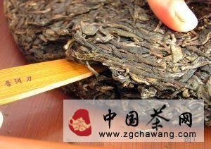 下面,我們以一餅普洱茶生餅為例:我們選用了一把竹質(zhì)的茶刀