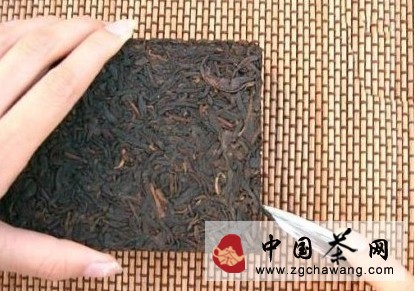 3.稍用力,用茶刀使茶磚表面的茶層脫開(kāi)。