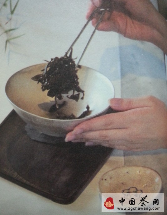 賞葉底時(shí)可直接以碗傳閱,或用細香筷將茶夾入渣盞中。