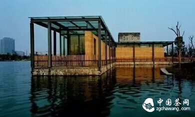茶室采用合院形態(tài),其屋面由鋼構玻璃建造,南面有一小荷塘,經(jīng)一小橋直入。這水上的茶室讓傳統和現代完美的結合在一起,坐在里面品茶一定別有滋味了~