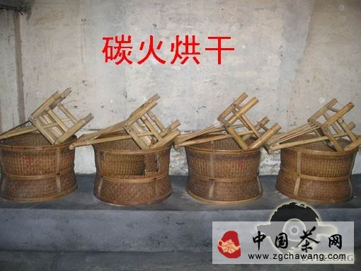 烘焙:復揉后的茶葉經(jīng)解塊后,于焙籠中攤放在特制的有孔平面焙篩上,明火高溫水焙,各焙窟溫度從高逐漸到低,在不同溫度的條件下完成水焙工序。下焙后過(guò)篩,置于篩中薄攤后放在晾青架上晾索,在透晾并待茶條轉達色后,付初揀。剔除梗、片,再經(jīng)巡茶者揀出不夠好的茶條。揀完加焙燉火,在燉火后團包。團包后,還要最后復火,俗稱(chēng)坑火,以去紙中水分。這樣對提高耐泡程度、醇和度、熟化香氣及增進(jìn)湯色能起明顯的作用。燉火結束后,趁熱堆裝箱,對巖茶內含物質(zhì)能起熱處理的催化作用,以達到香氣、滋味的提高。燉火過(guò)程的細致處理,為巖茶所獨有,而為任何其它茶類(lèi)所不及。